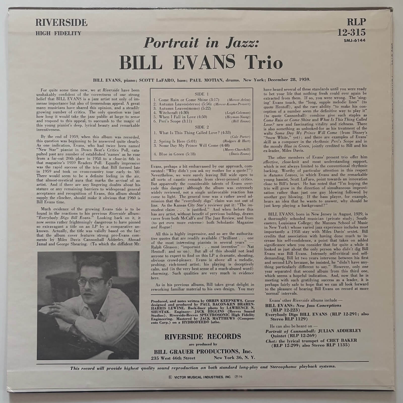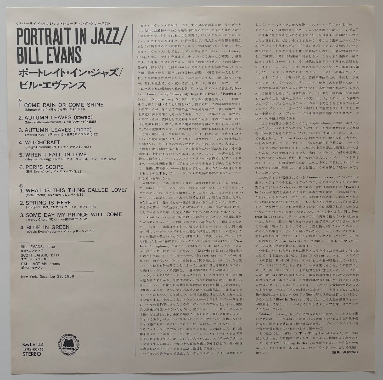 Bill Evans Trio - Portrait in Jazz | Vinyl LP - 1976 Japanese Riverside SMJ-6144 (Victor Musical Industries, Riverside Original Recording Series No. 64)