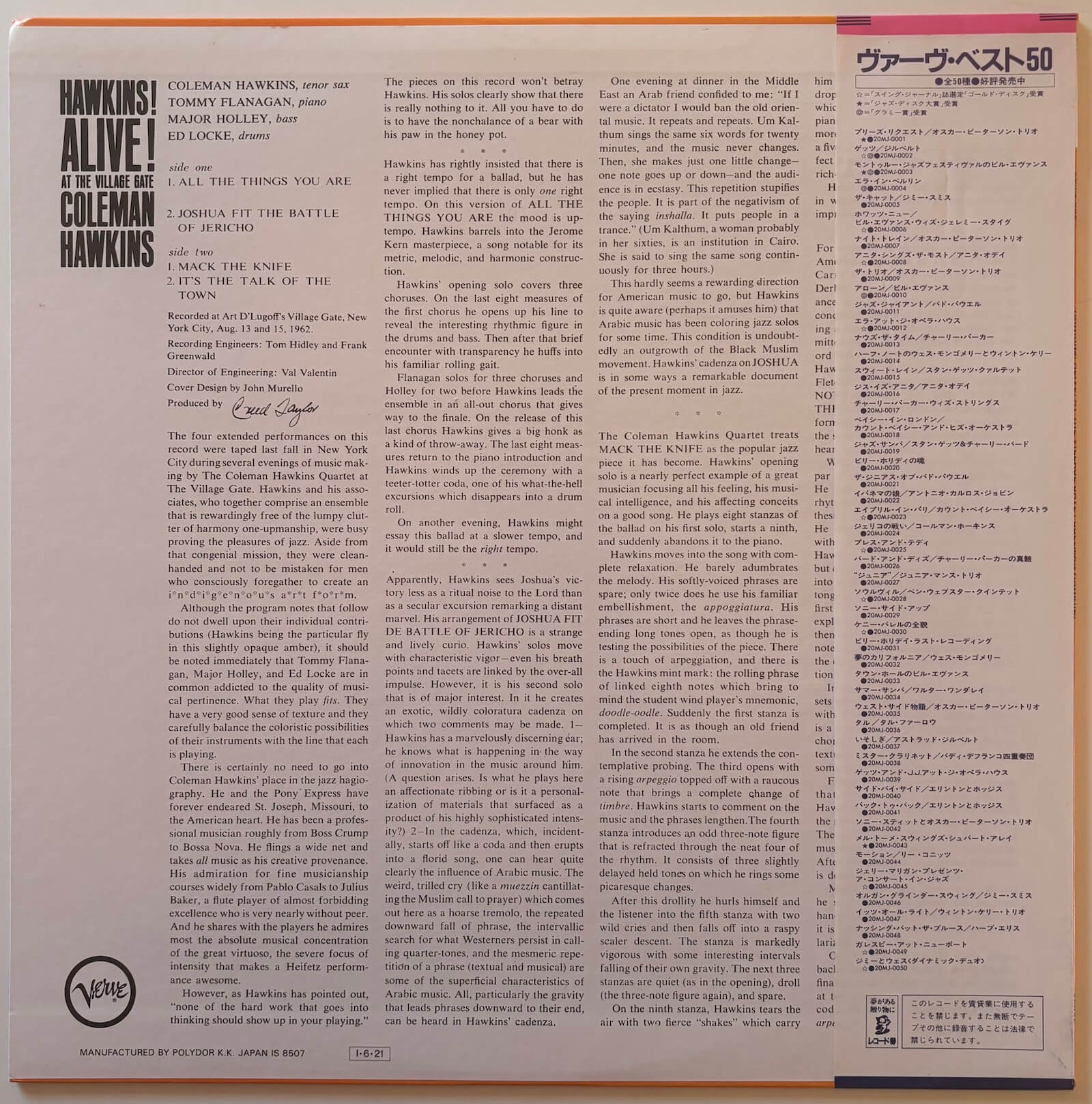 Coleman Hawkins - Hawkins! Alive At The Village Gate (Japanese Verve Vinyl LP)