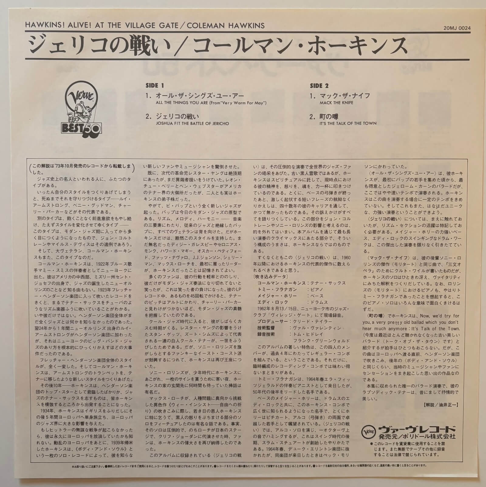 Label: Verve Records – 20MJ 0024
