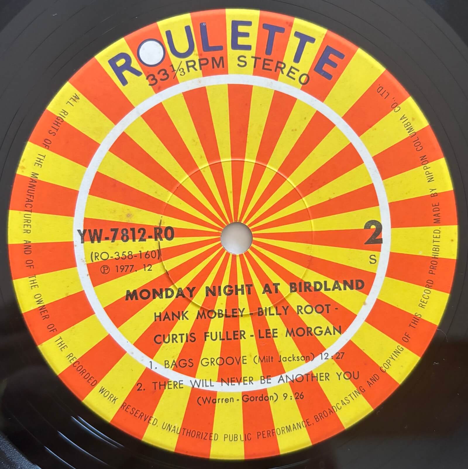 - 1977 Japanese Roulette Birdland Series stereo pressing, manufactured by Nippon Columbia Co., Ltd.