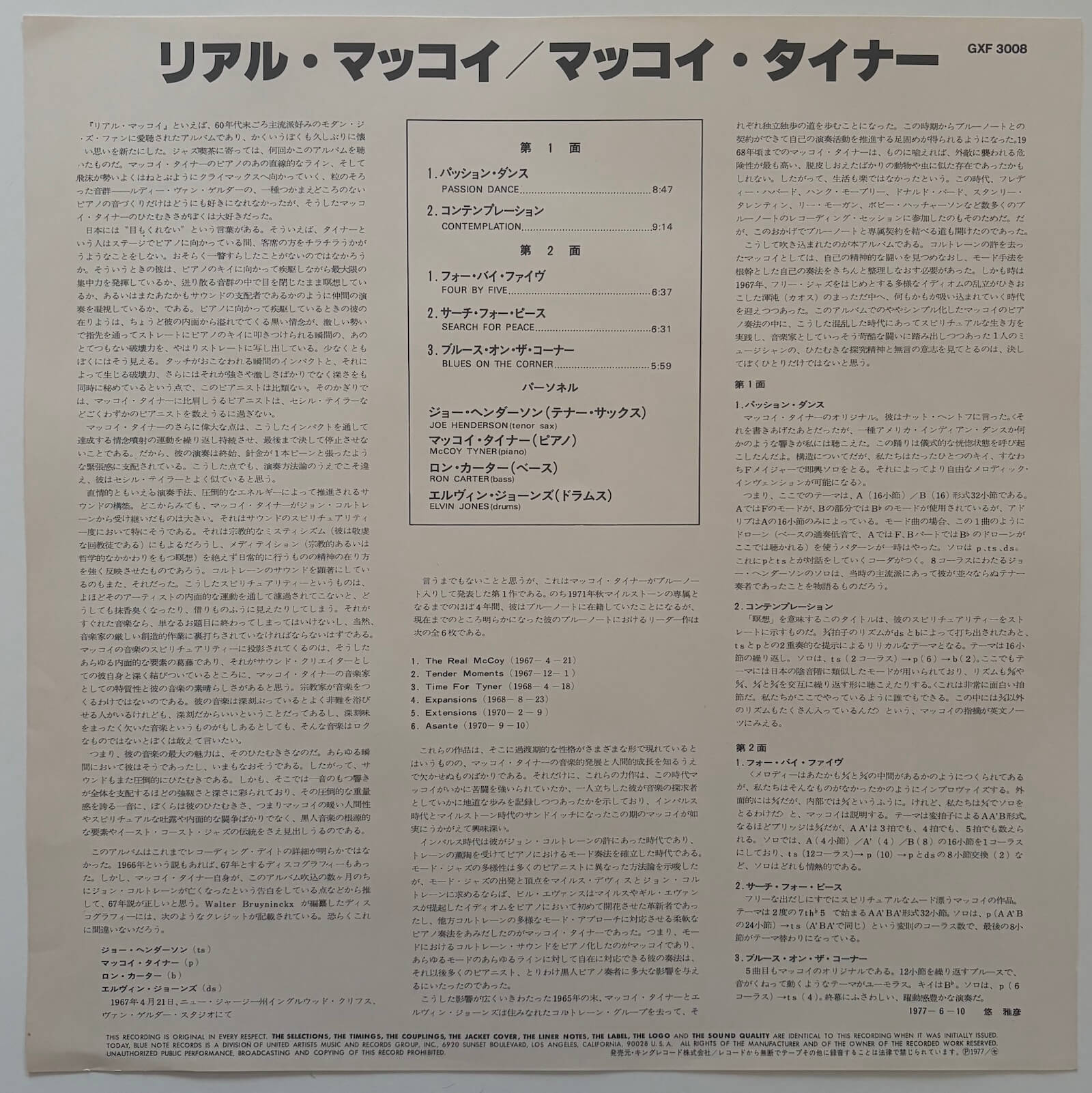 McCoy Tyner - The Real McCoy | Vinyl LP - 1977 Japanese Blue Note GXF-3008 (King Record 1800 Series Limited Edition)