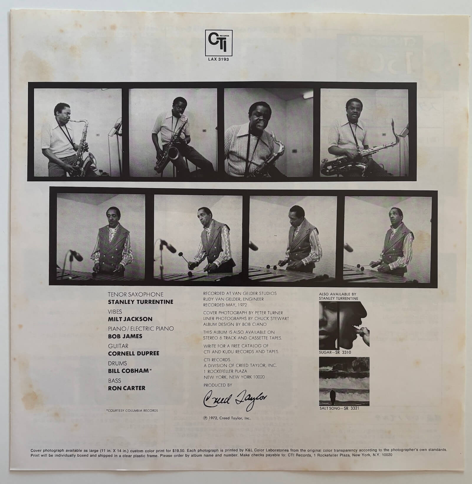 Turrentine's warm, blues-drenched tenor sound finds perfect complement in Jackson's shimmering vibraphone, their frontline creating sophisticated yet accessible melodies over the rhythm section's tight grooves. Bob James' electric piano and acoustic piano work bridges the soul-jazz and sophisticated hard bop elements, while Cornell Dupree's guitar adds funk credentials and Ron Carter's bass provides both melodic invention and rhythmic foundation. Billy Cobham's drumming, just before his fusion stardom, demonstrates the power and precision that made him CTI's go-to drummer for jazz-funk sessions.